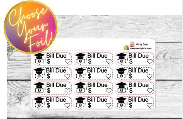 FOILED Student Loan Bill Due Stickers - Choose your foil!