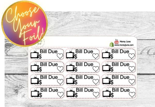 FOILED TV/Cable Bill Due Stickers - Choose your foil!
