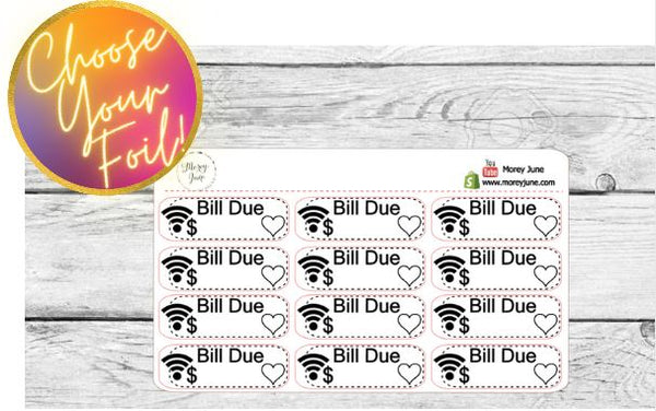 FOILED Internet Bill Due Stickers - Choose your foil!