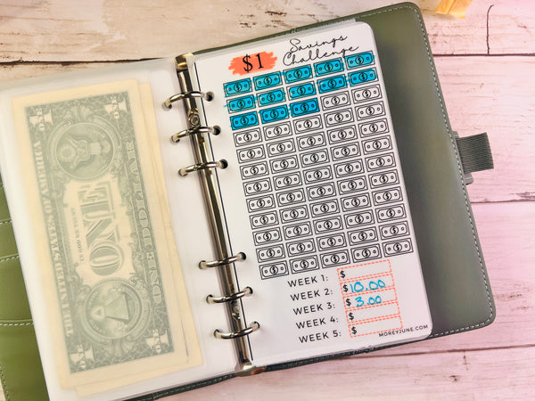 $1 Savings Challenge | Mini Savings Challenge Trackers | Fits A6 or A7 Budget Binders