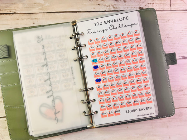 1 - Laminated 100 Envelope Savings Challenge tracker - A6 or A7